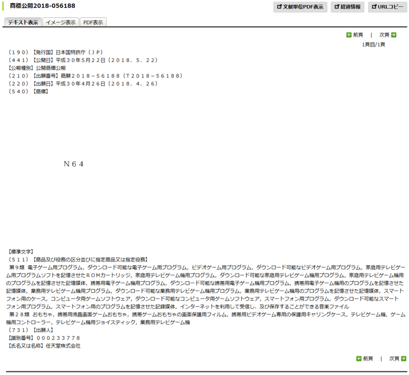 任天堂は2017年7月に、欧州連合知的財産庁(EUIPO)に対して『NINTENDO64』のコントローラーの図形商標を出願・登録していることが分かっています。