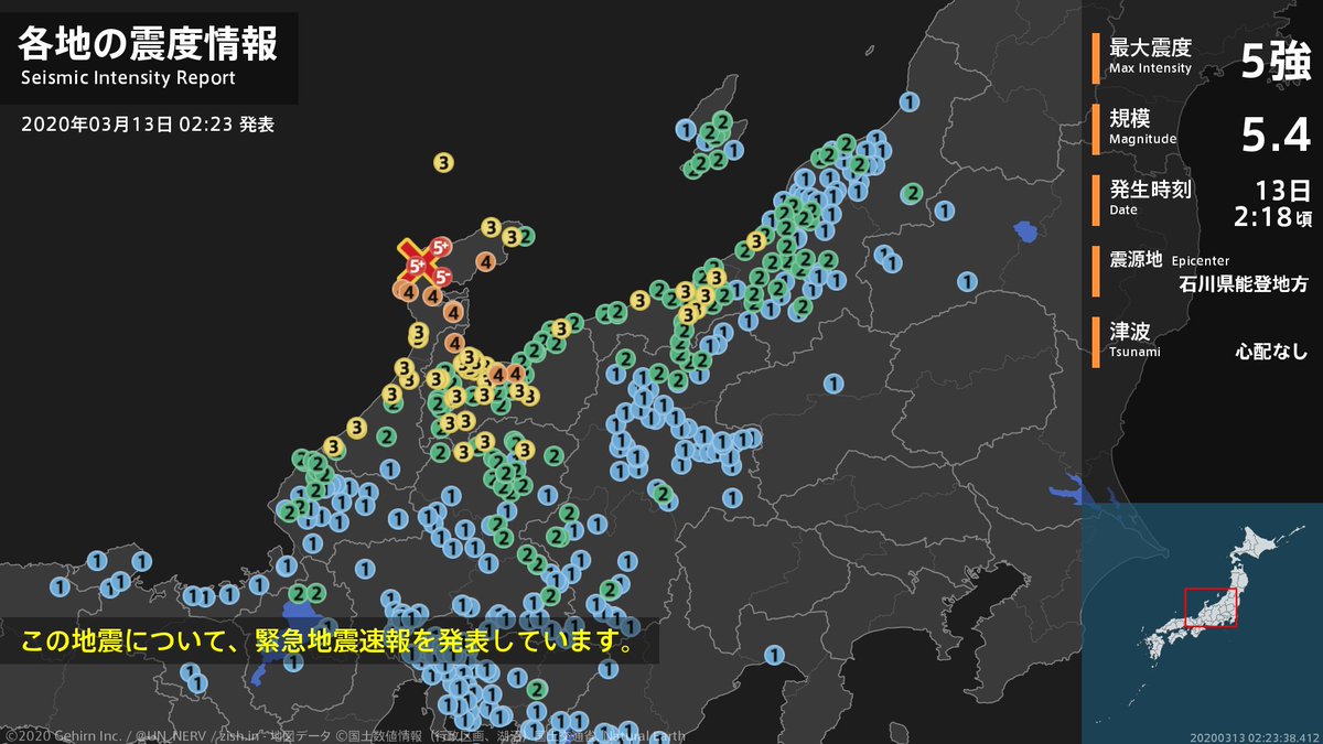 令和 2年 3月13日02時21分 気象庁発表