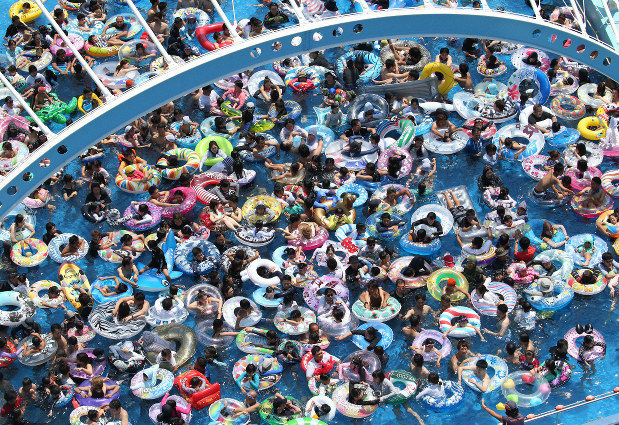 好天に恵まれた11日、三重県桑名市の遊園地「ナガシマスパーランド」のジャンボ海水プールには、涼を求めて若者や親子連れなど約4万5000人が訪れた。