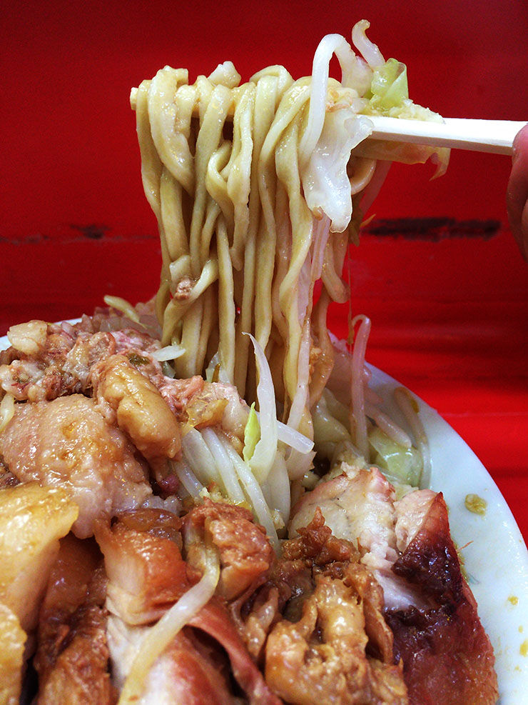 確かにラーメン二郎には大盛りなイメージはあるものの、前提として自分が食べきれる量を注文すべきだ。路上で吐き出すほど食べるのはマナー違反であり、なにより健康を害する。麺の量を半分にすることも可能なので、絶対に面白半分で大盛りにすべきではない。